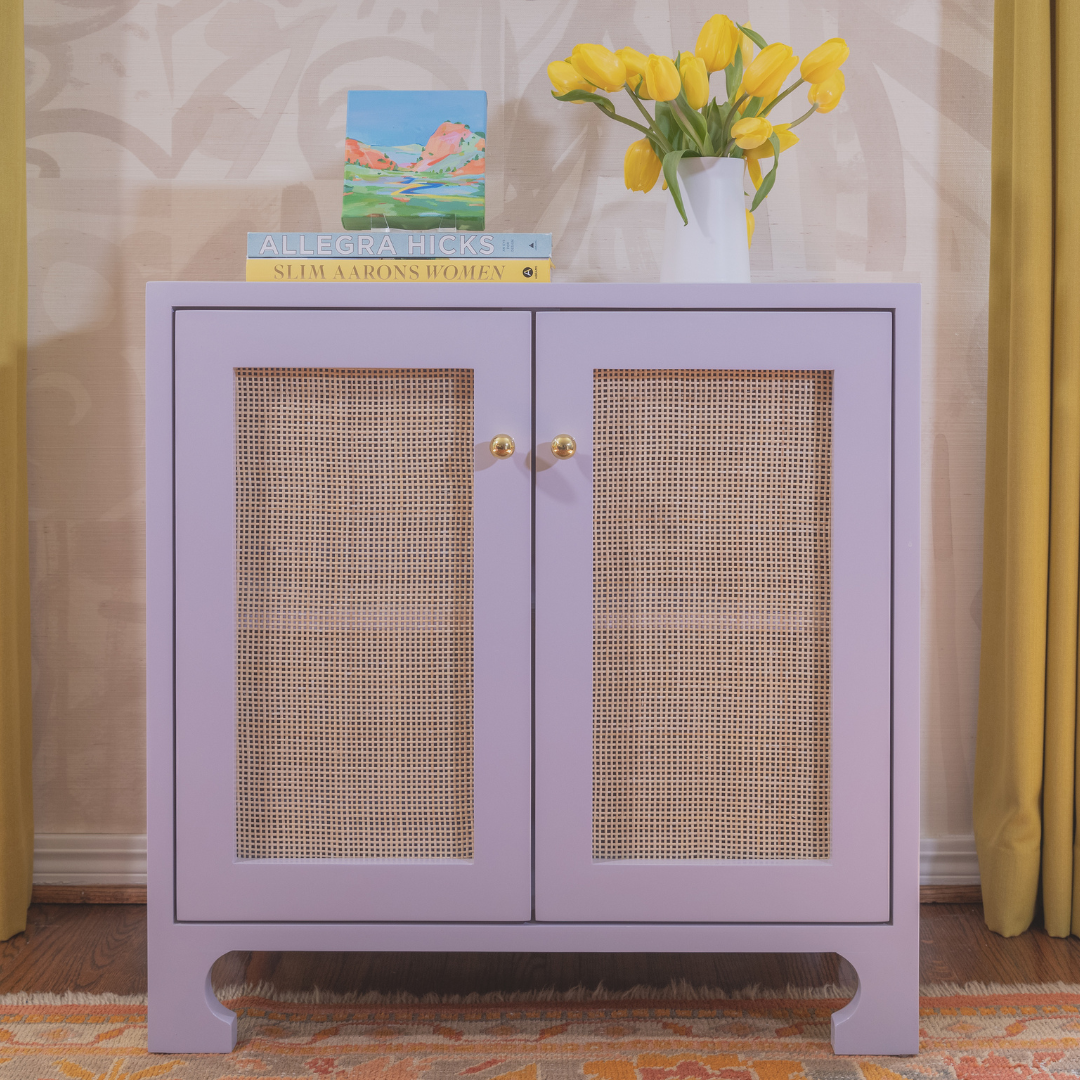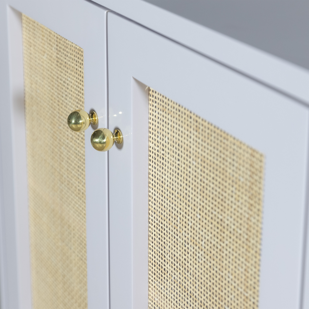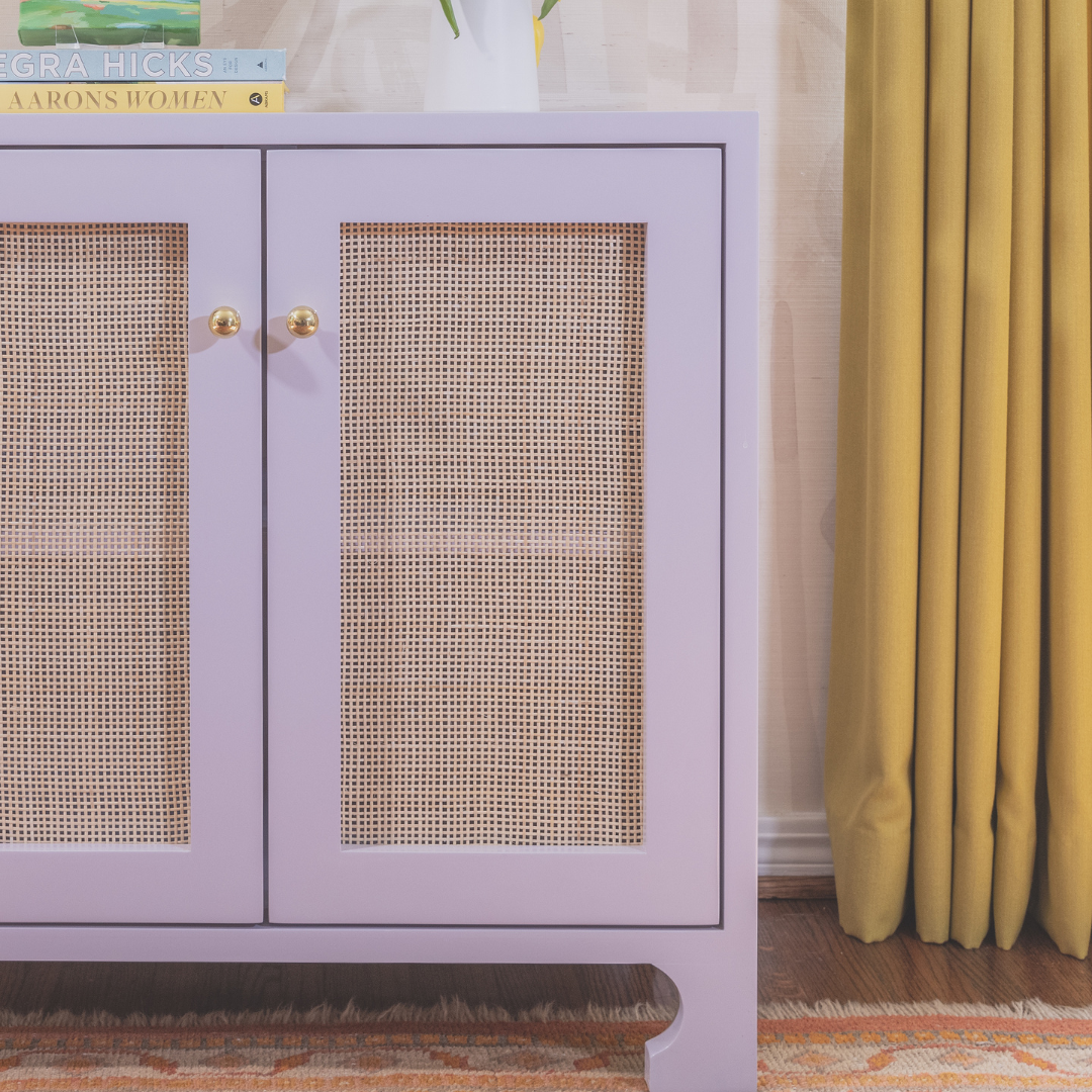 The Ellie Credenza was designed as an accent cabinet for just about any space. The combination of the cane detailing on the doors, round brass knobs, and curved feet make the Ellie Credenza an absolute showstopper!