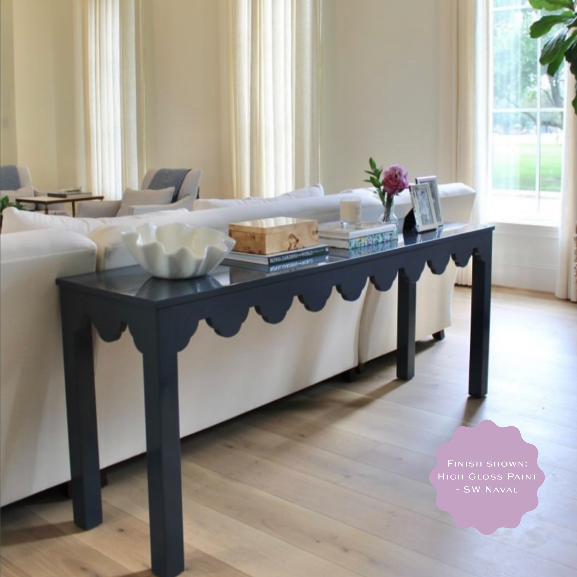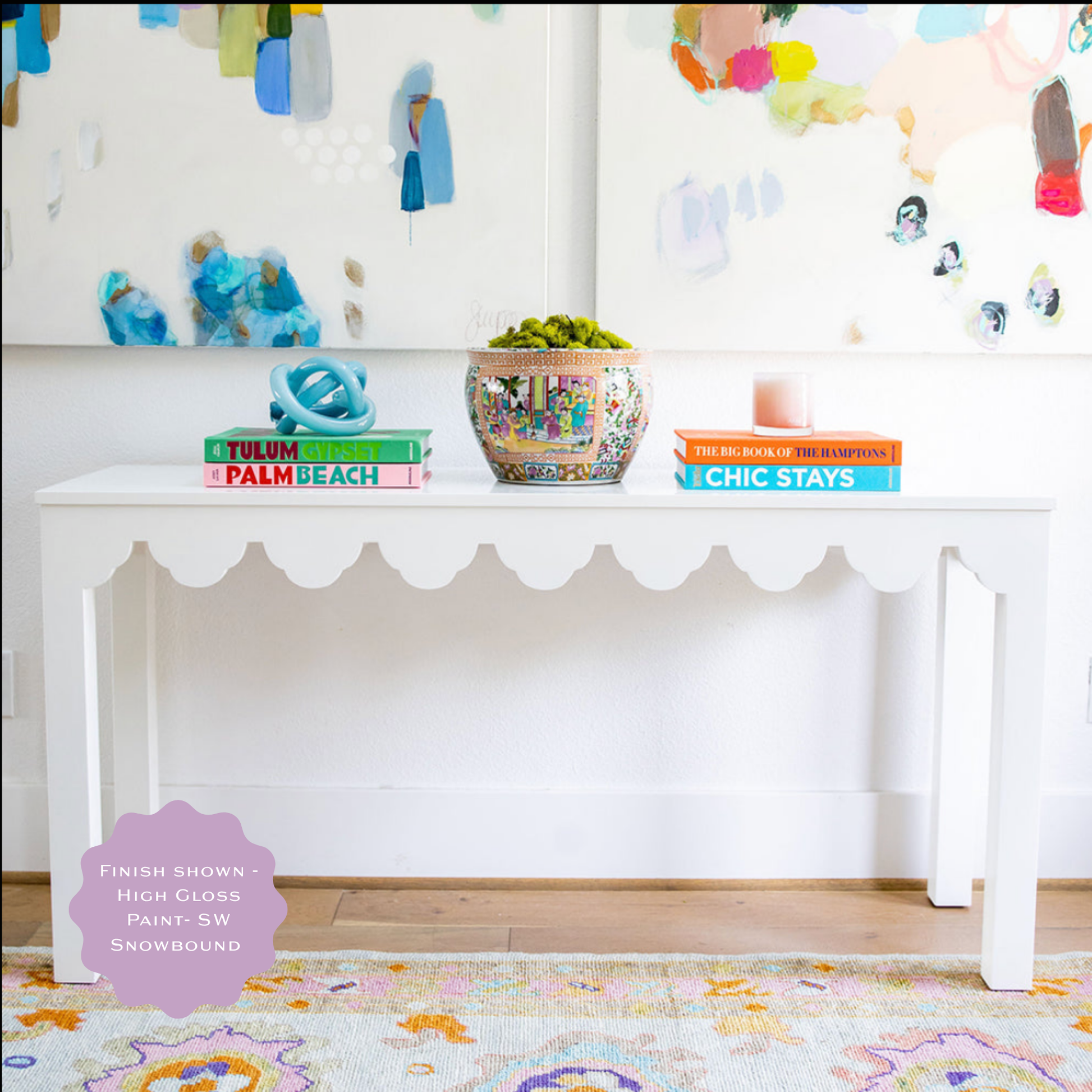 Oh, how we love all things scallop and our sweet client Barbara from our #clienthappyvalleyranch project! Just like our client, the Barbara Console is the perfect feminine piece that is timeless, elegant, and so fun. We love to put a lamp (or two) on the Barbara Console for extra lighting in a space and either a pair of stools or a wicker basket underneath. Let’s be honest, how cute is a scallop?!