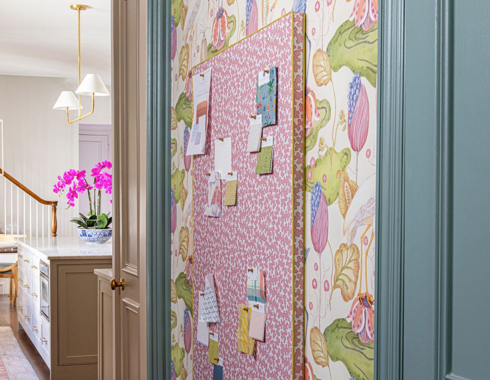 Add a stylish yet functional touch to your space with our Upholstered Bulletin Board, a beautifully designed piece that combines practicality with elegant design. Meticulously crafted with a wood frame and cork material, this bulletin board is wrapped in fabric for a tailored look that complements any interior.