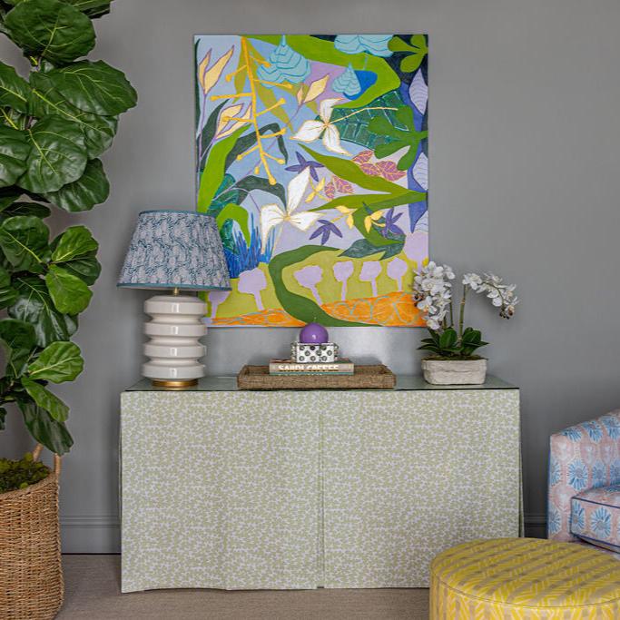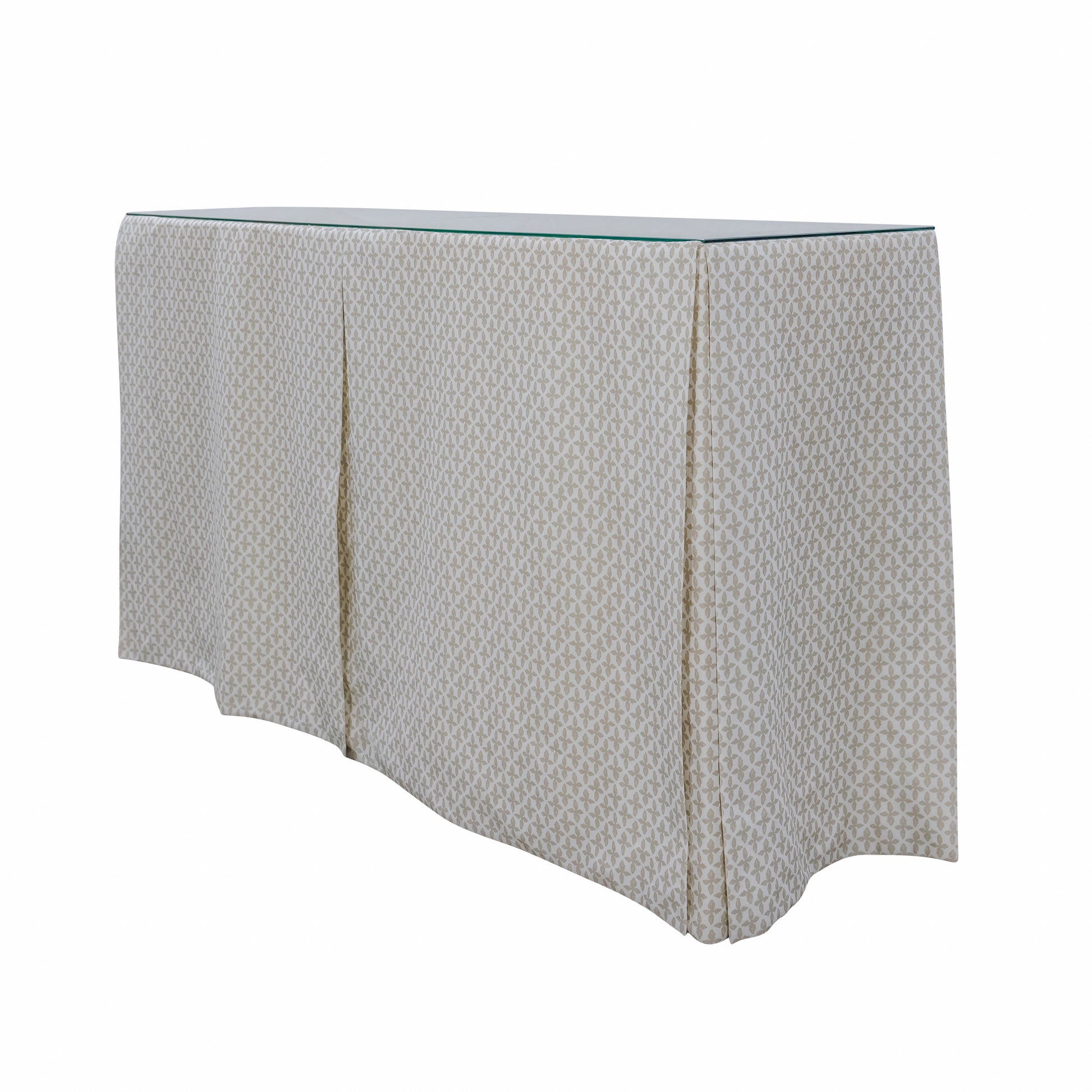 Elevate your space with our Ella Skirted Console, a sophisticated blend of timeless design and modern elegance. This piece is meticulously crafted to bring a refined aesthetic to any room, featuring hand-tailored skirt that drapes effortlessly to the floor, concealing the table structure beneath. The console table beneath the skirt is made from premium hardwoods, offering a sturdy and durable base. Its minimalist design allows for versatile use in entryways, living rooms, or dining areas, perfect for displaying art, lighting, or floral arrangements.