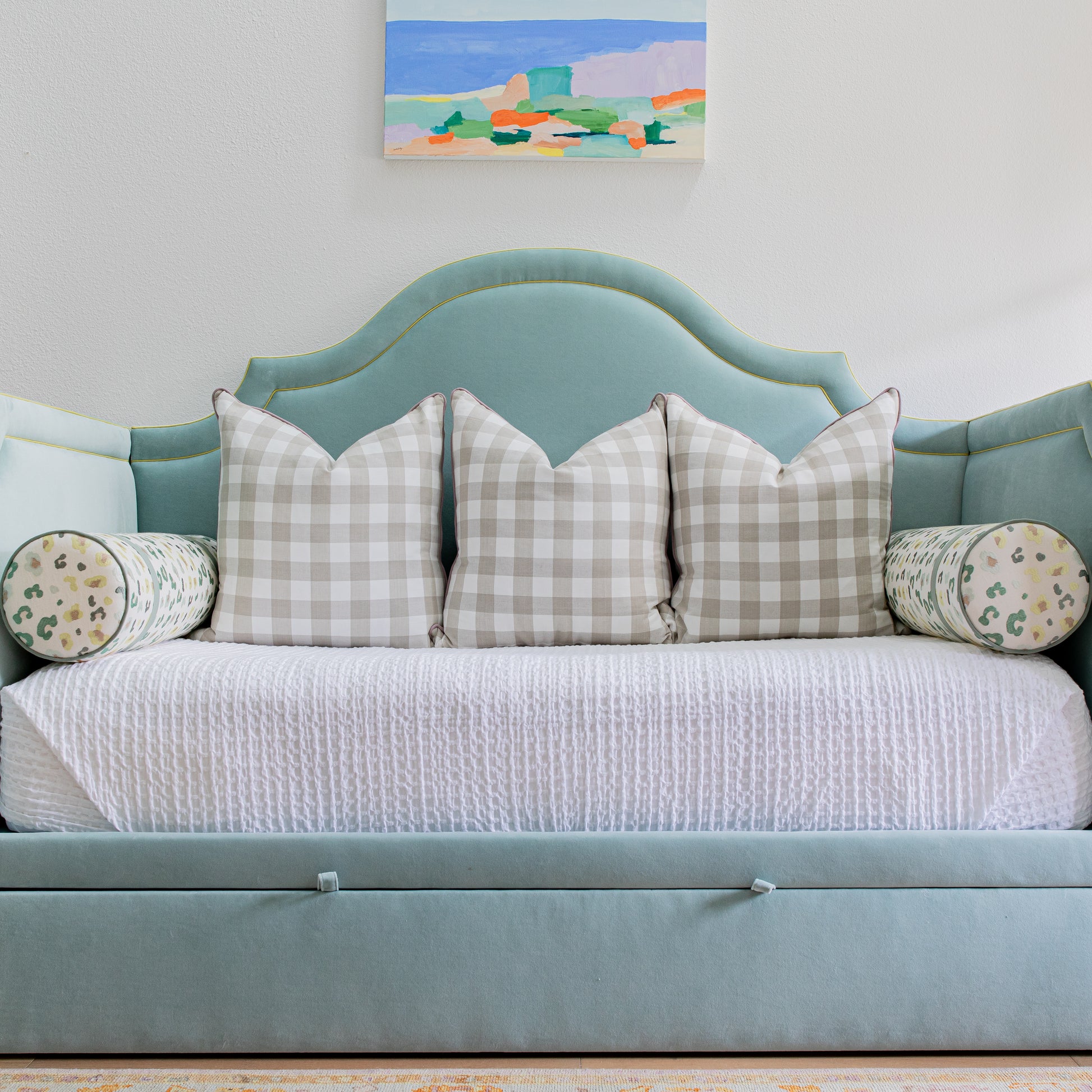 Bolsters: (2) Created in the same base fabric and piping chosen