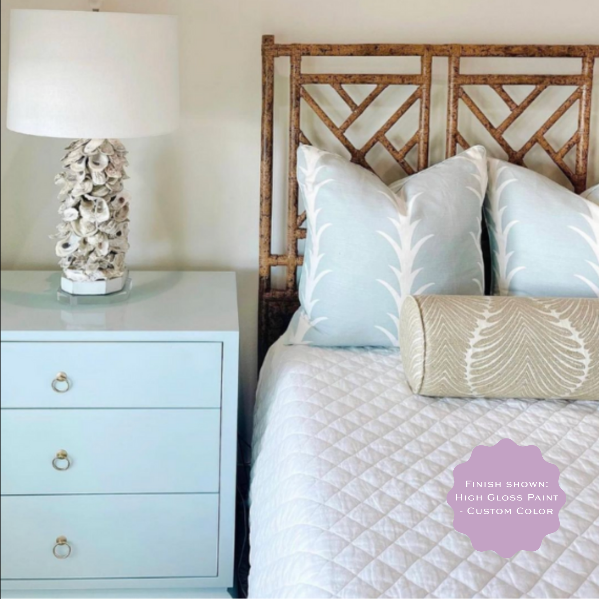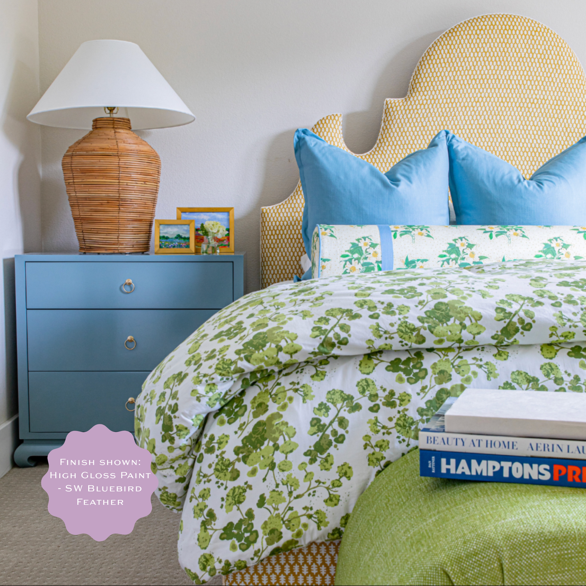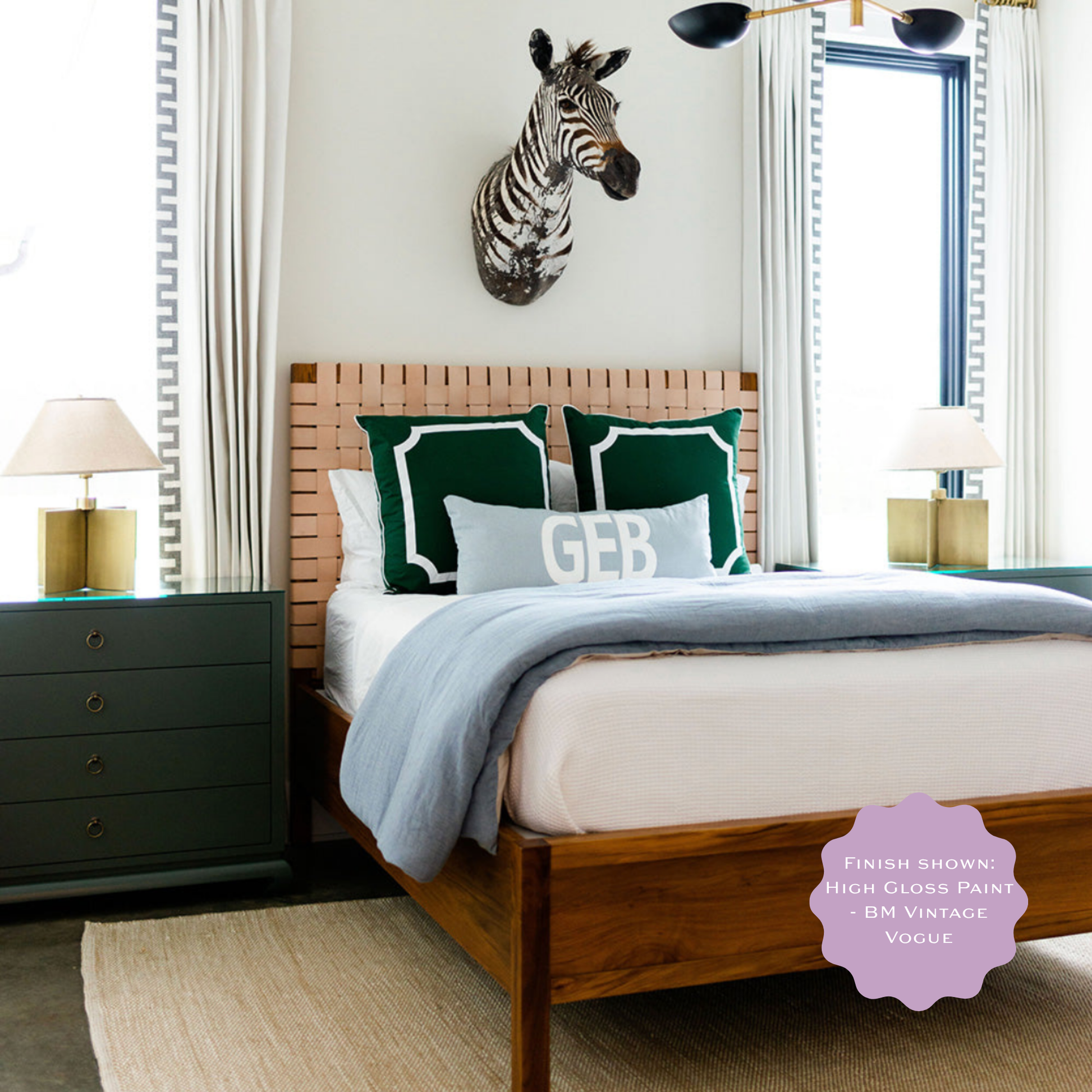 Finish shown: High Gloss Paint - SW Bluebird Feather and BM Vintage Vogue (in bedroom)