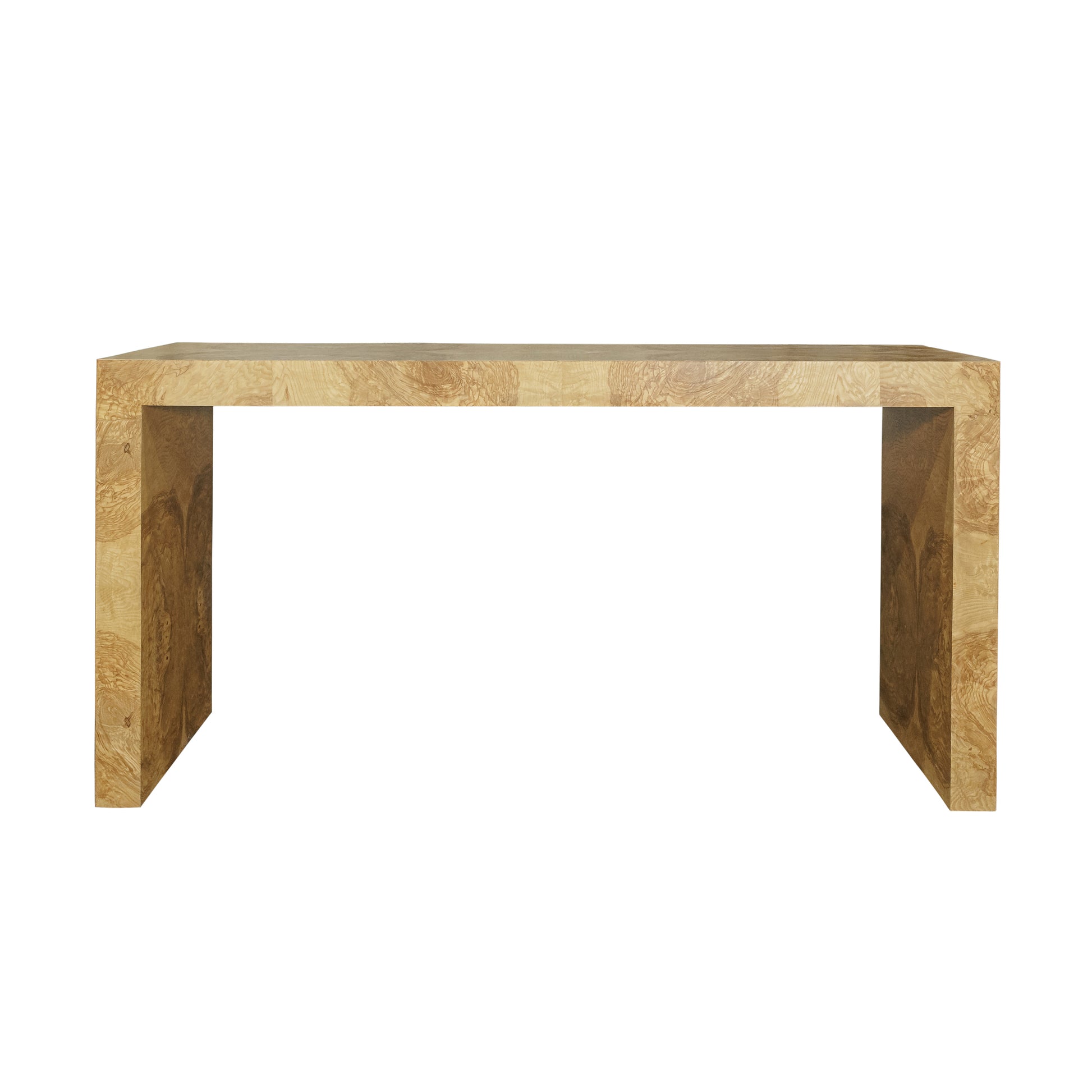 The Haylee Console, first seen in the “Nanny’s Suite” at our #buildingbelt project was designed to instantly elevate a room with its simple, yet dramatic waterfall edges. We love incorporating two stools underneath this console table for extra seating and layering the space. The Haylee Console is available in both high gloss paint or burl wood.
