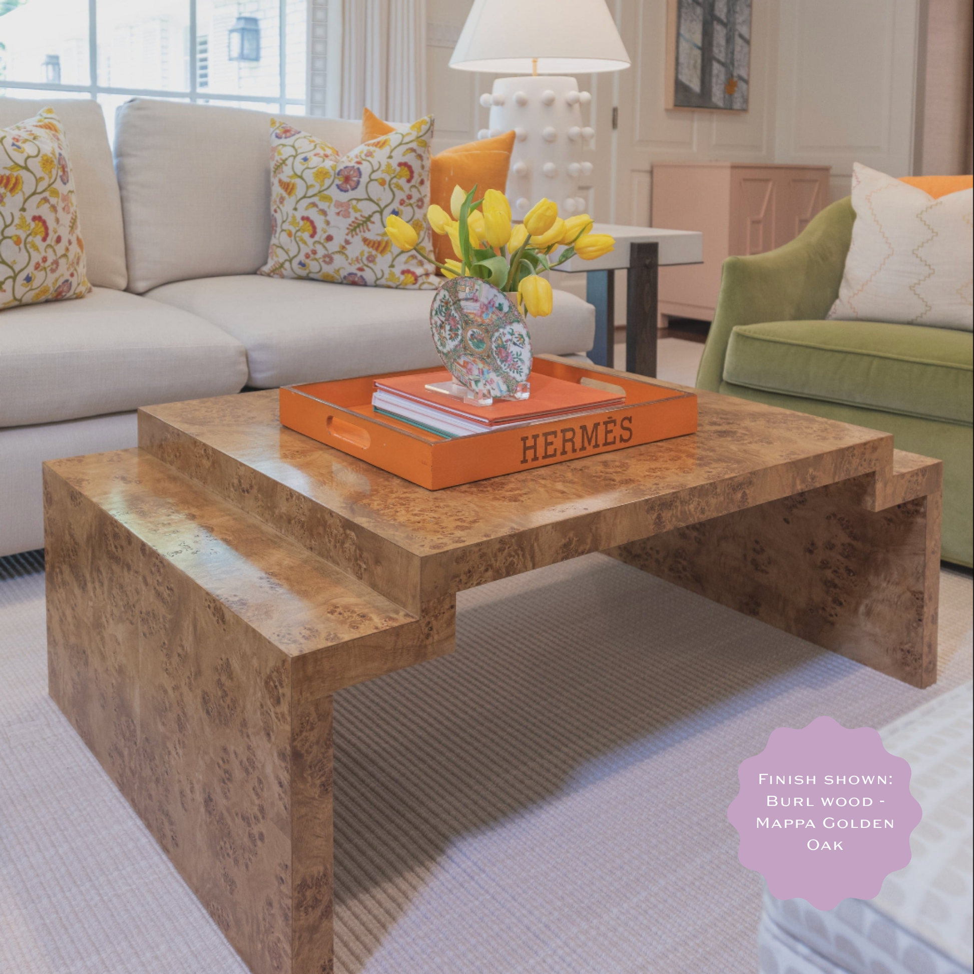 The Kate Coffee Table is named after the one and only Kate from 'Lonestar Southern'. Just like sweet Kate, the Kate Coffee Table is classic, polished, and sophisticated with interesting detail. The Kate Coffee Table will be the talk of your space with its two-tiered finished top, perfect for all your coffee table accessories.