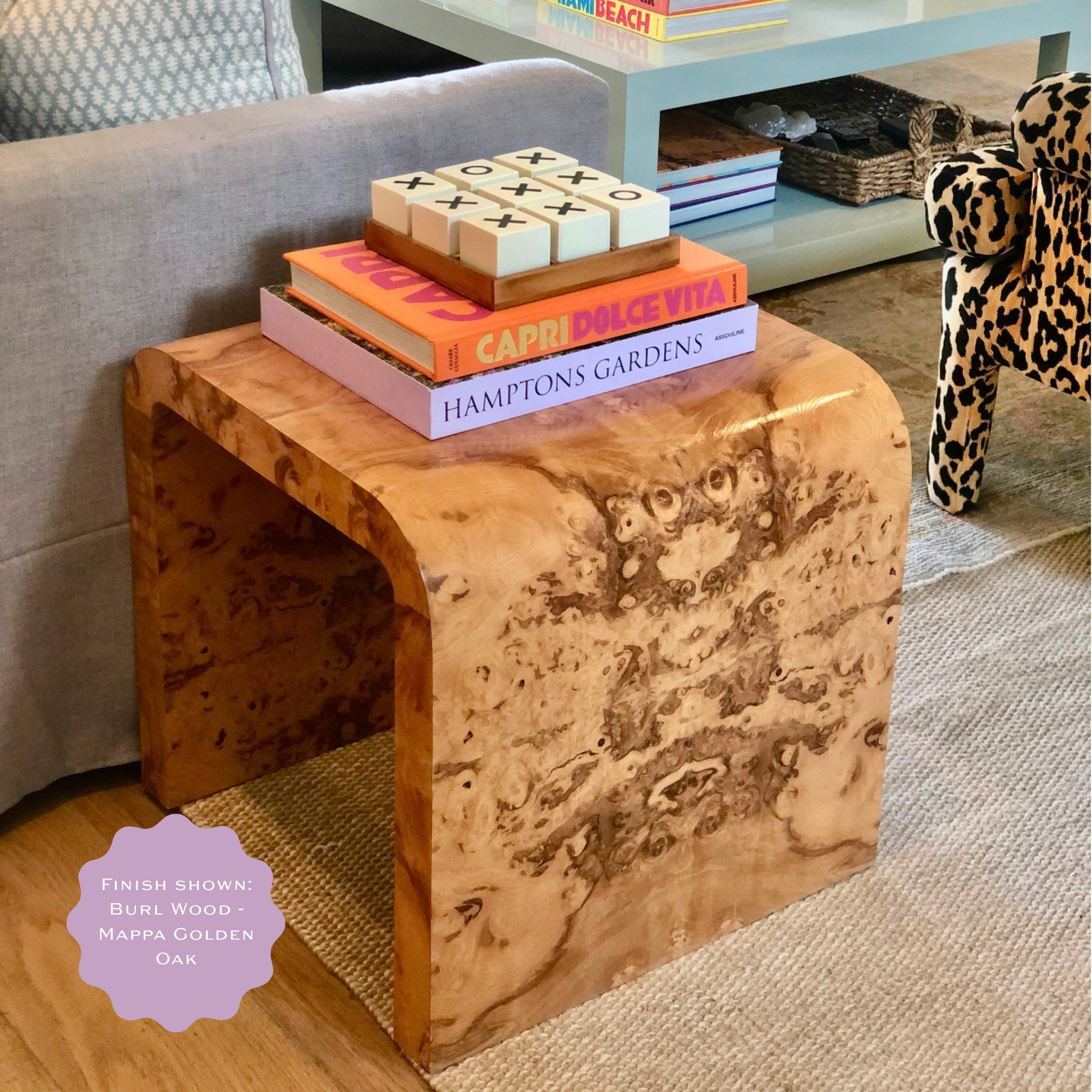 The Marta Side Table is our classic waterfall side table with a similar aesthetic to our Caroline Console Table. Its rounded edges make the minimalist waterfall design approachable and decor friendly. This piece was designed to go next to a sofa or between two chairs.