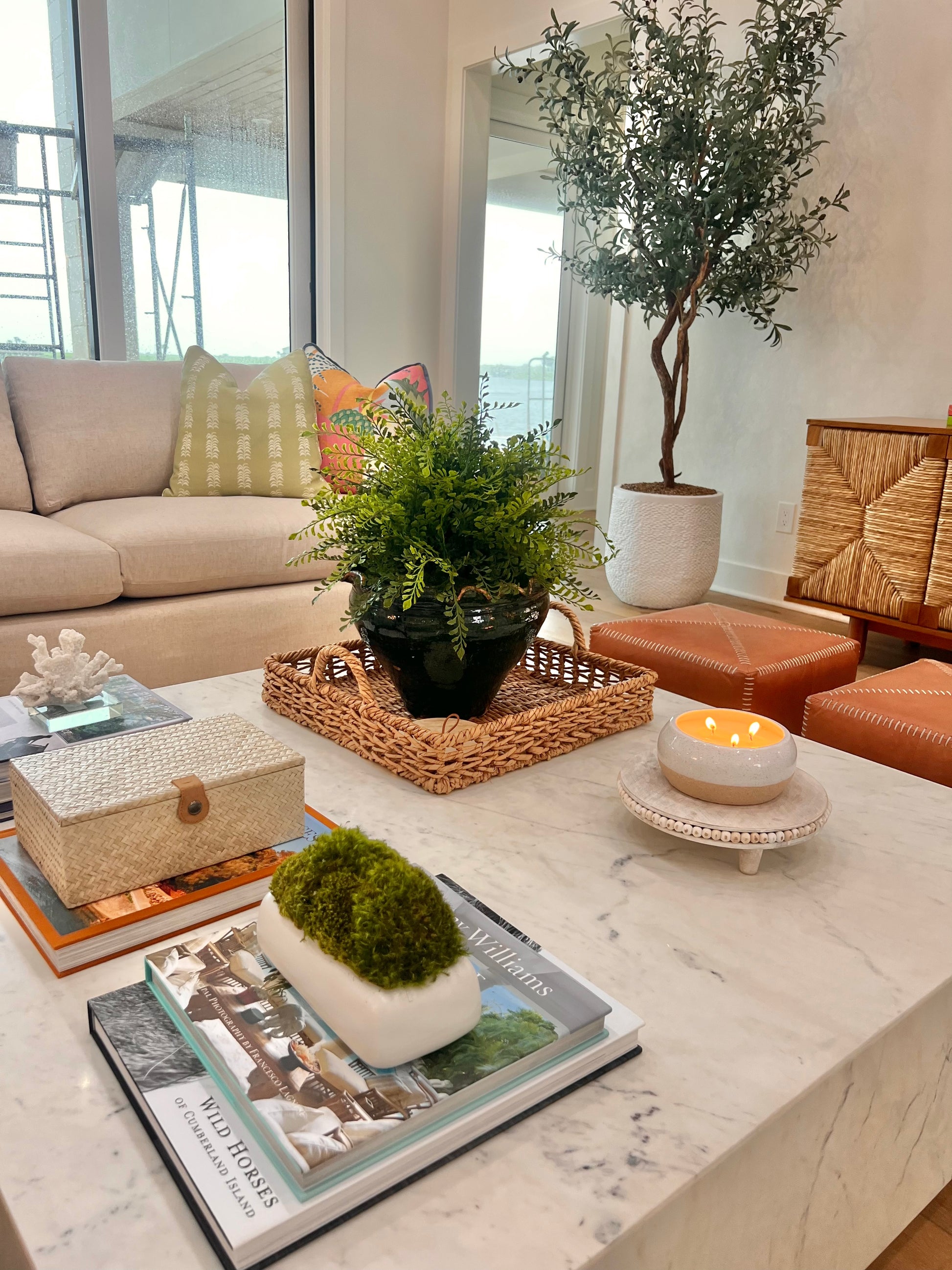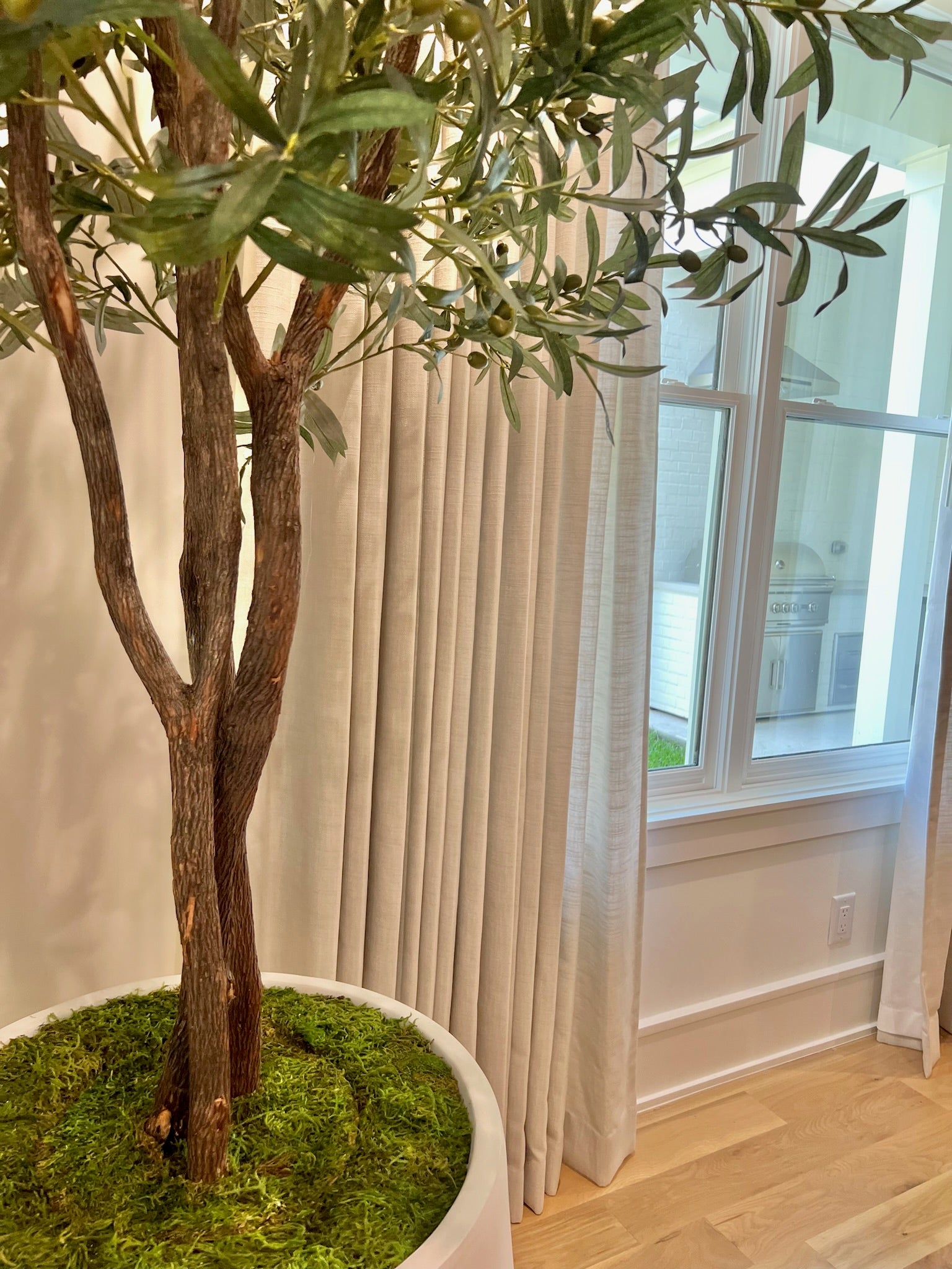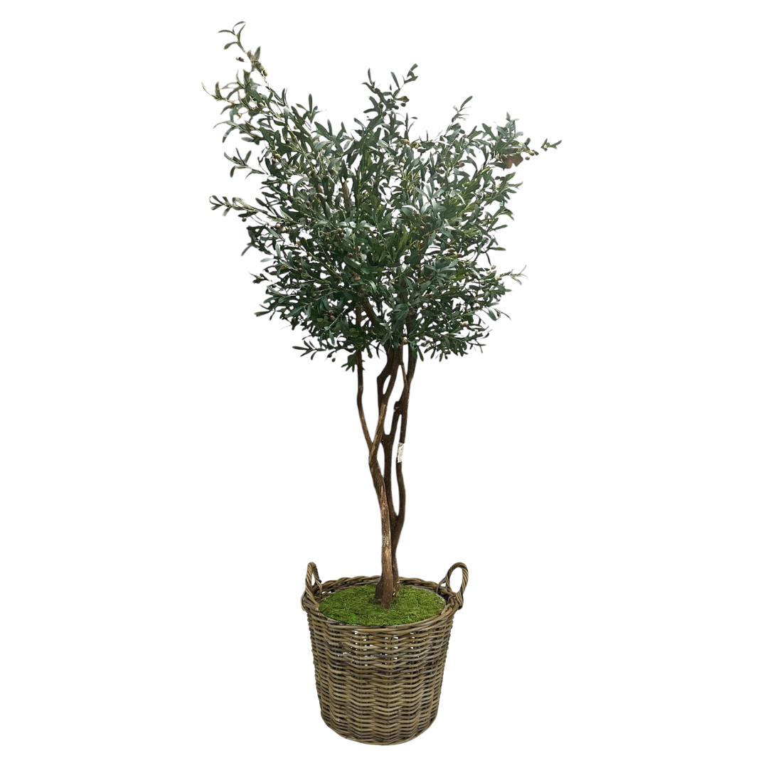 Bring the charm of the Mediterranean into your home with our beautifully crafted faux olive tree! Featuring delicate, lifelike silk leaves and slender real wood branches adorned with realistic faux olives, this tree is the perfect way to add a touch of nature to your space without the maintenance. The bottom is a Styrofoam base (16" round) with green moss topper which makes easy to transport to any basket or planter. Our olive trees are ideal for living rooms, dining areas, entryways, or office spaces, offering a timeless, neutral accent that complements any decor style.