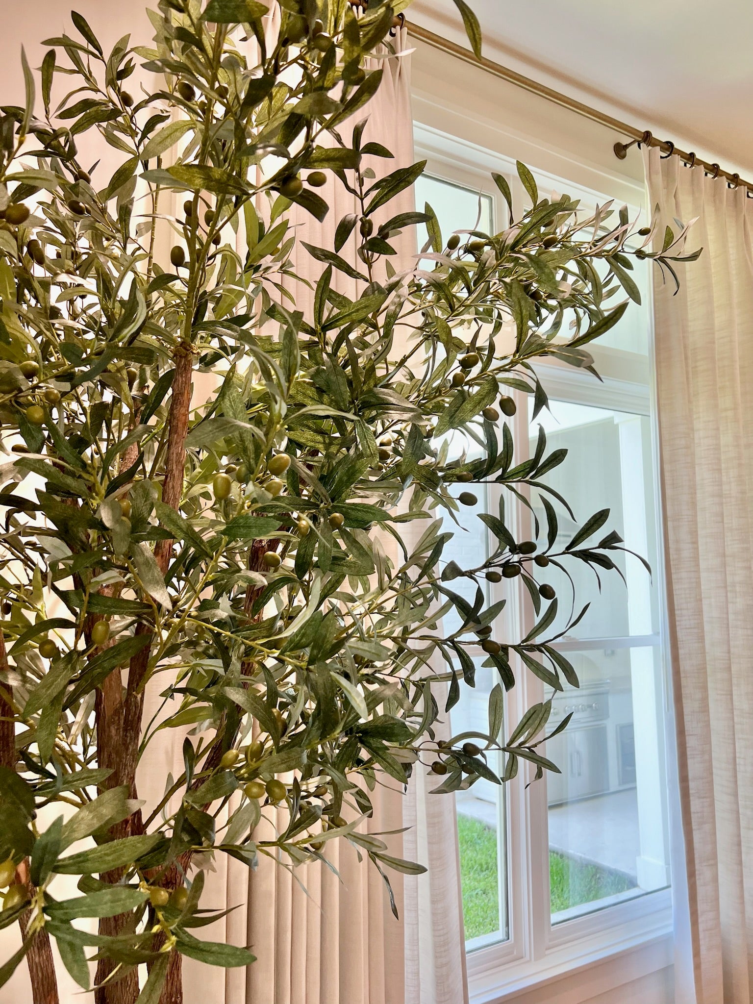 Instructions: When you take your olive tree out of the box, the key to making it look full and natural is fluffing the branches and leaves. Start by gently bending and shaping each branch outward, paying attention to create an organic, uneven look that mimics how real trees grow. Next, fan out the individual leaves, pulling them apart and positioning them at different angles for a more lifelike appearance. Take your time adjusting the branches and leaves to fill in any gaps, ensuring a full, lush look that enhances the tree’s natural beauty.